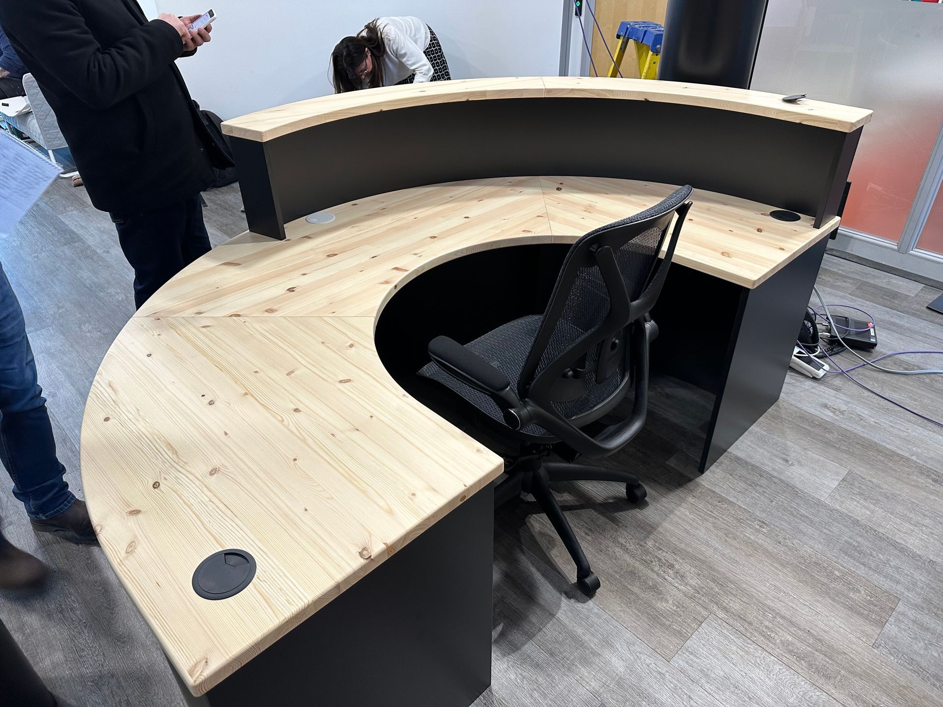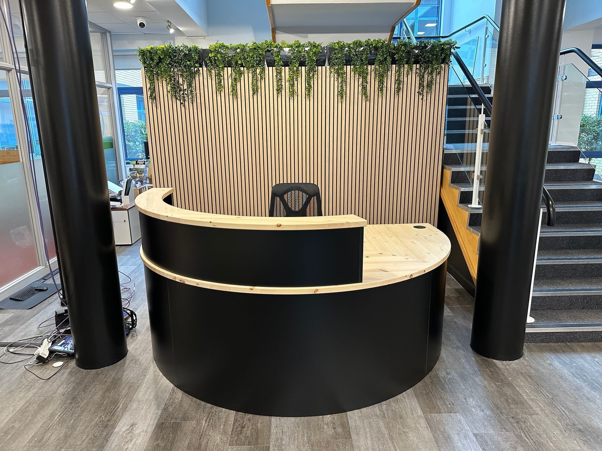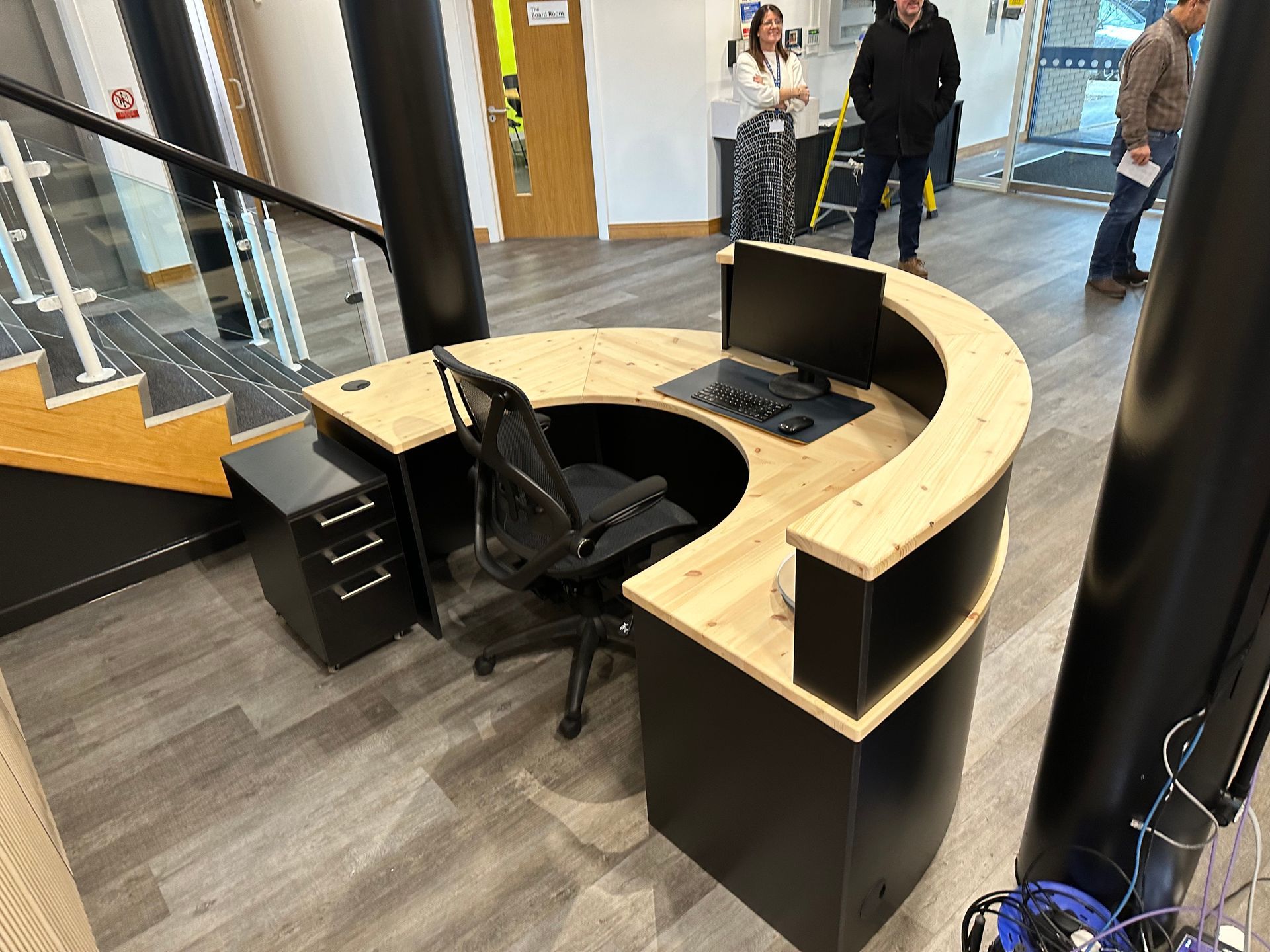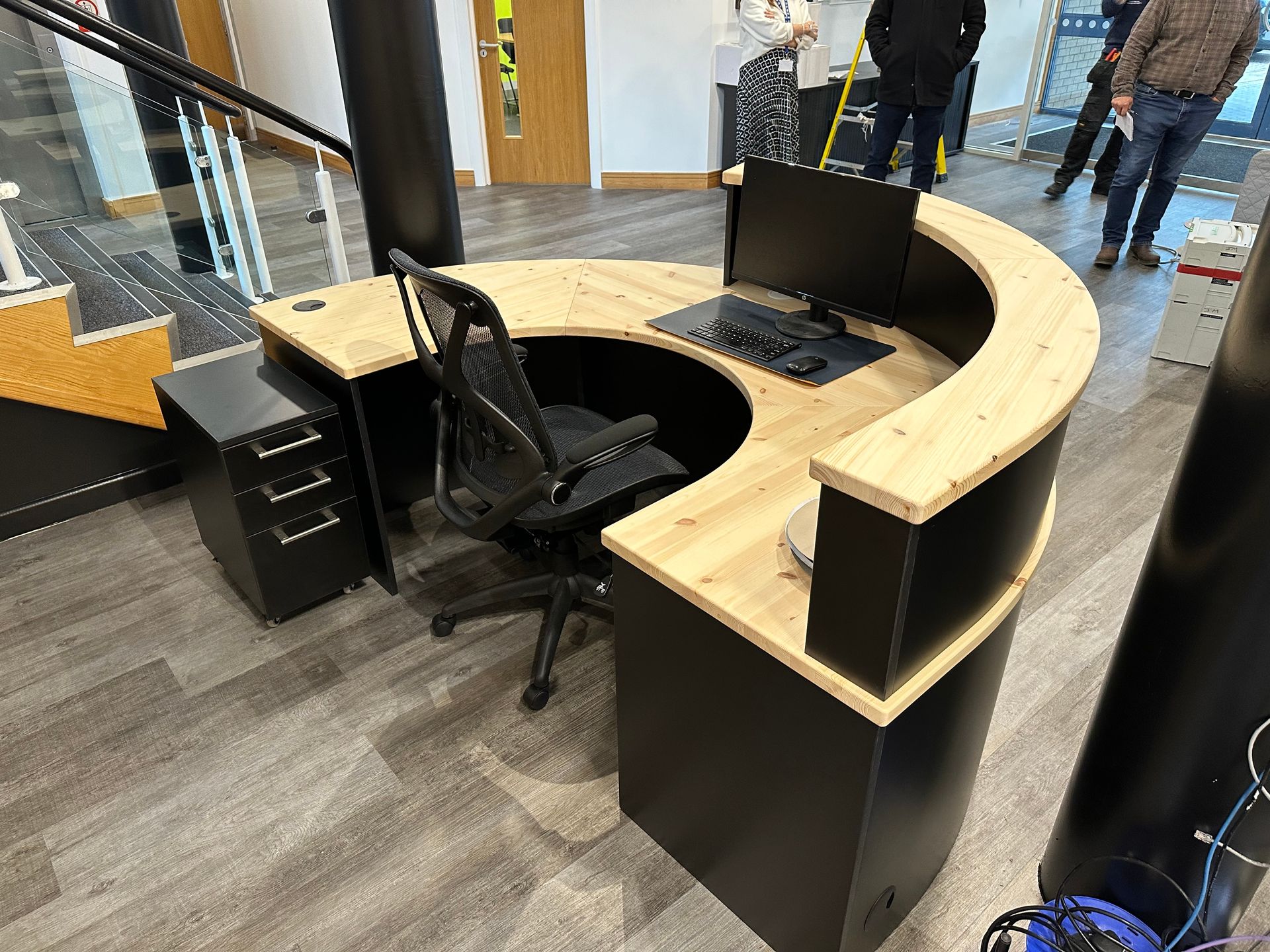 The JM team made this bespoke curved reception desk for a shared office space in Cardiff.