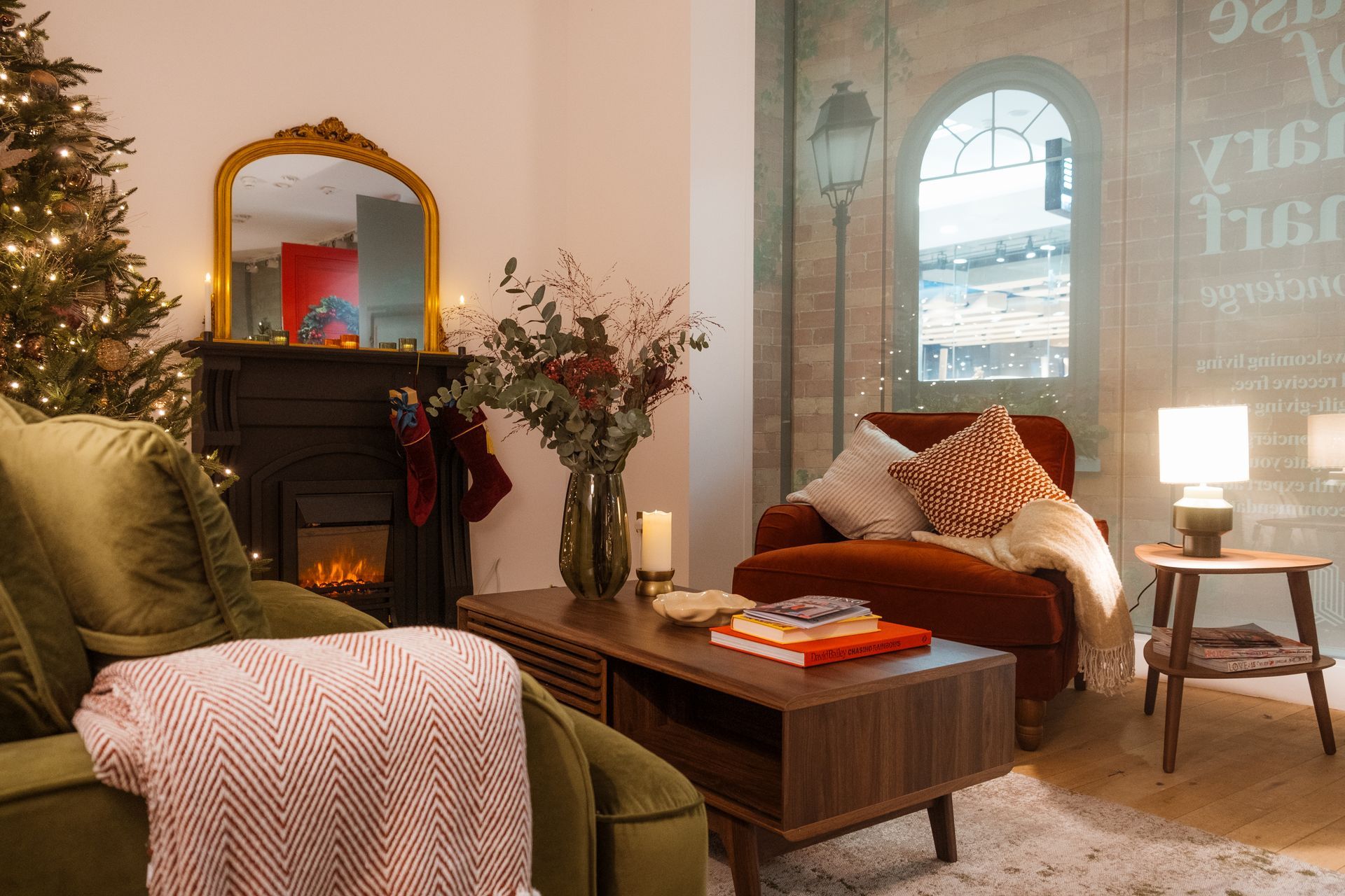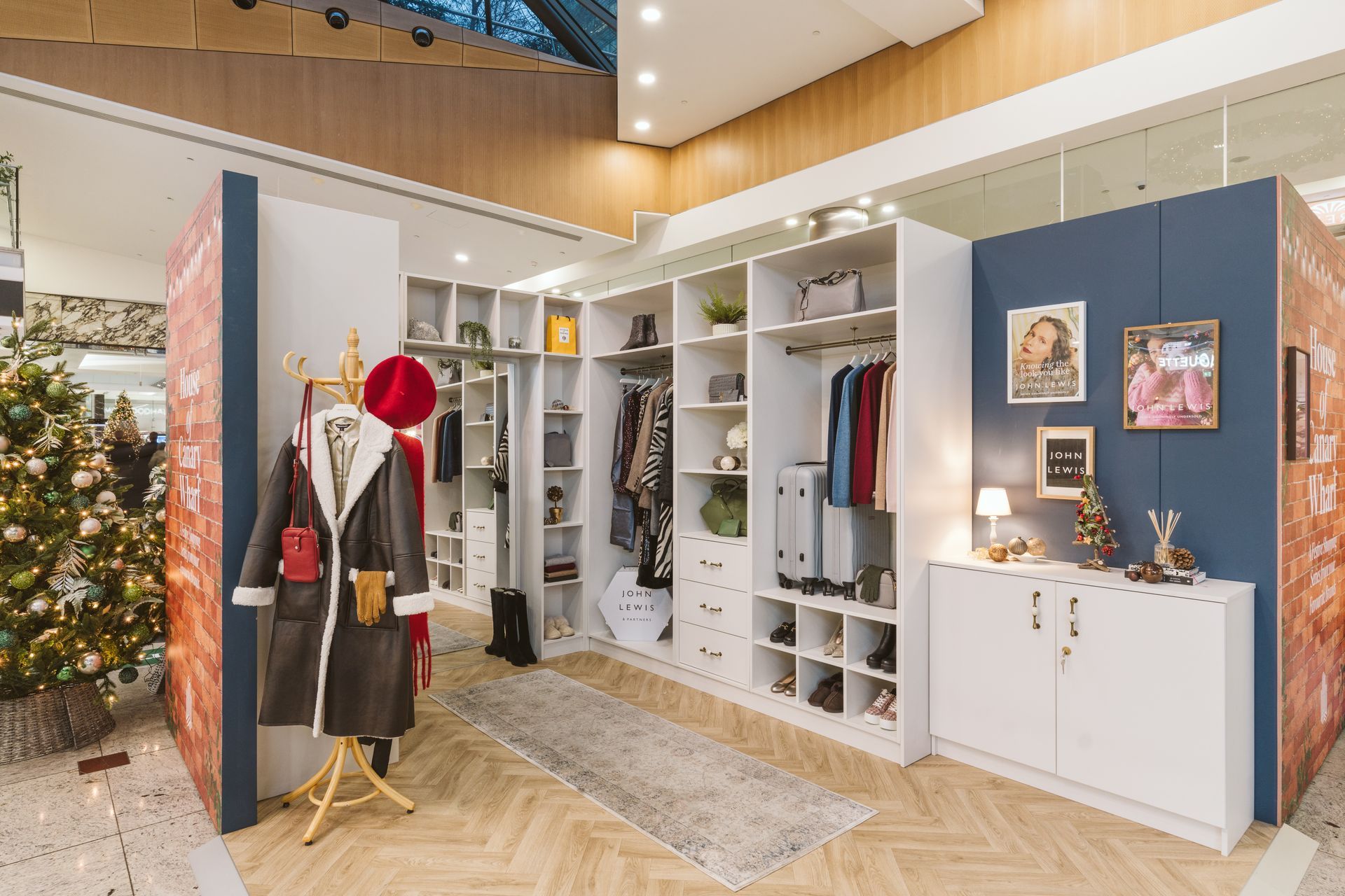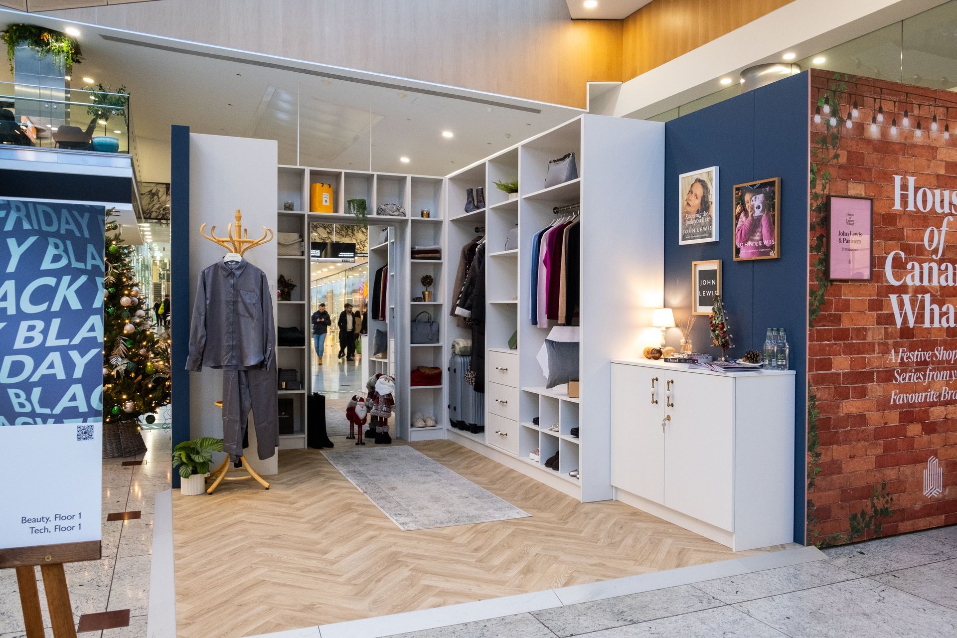 By building a freestanding structure and taking over one of the vacant shop spaces, the JM crew created these room settings for brands located within the Canary Wharf shopping centre to showcase some of their hero products to the christmas shopping crowd.