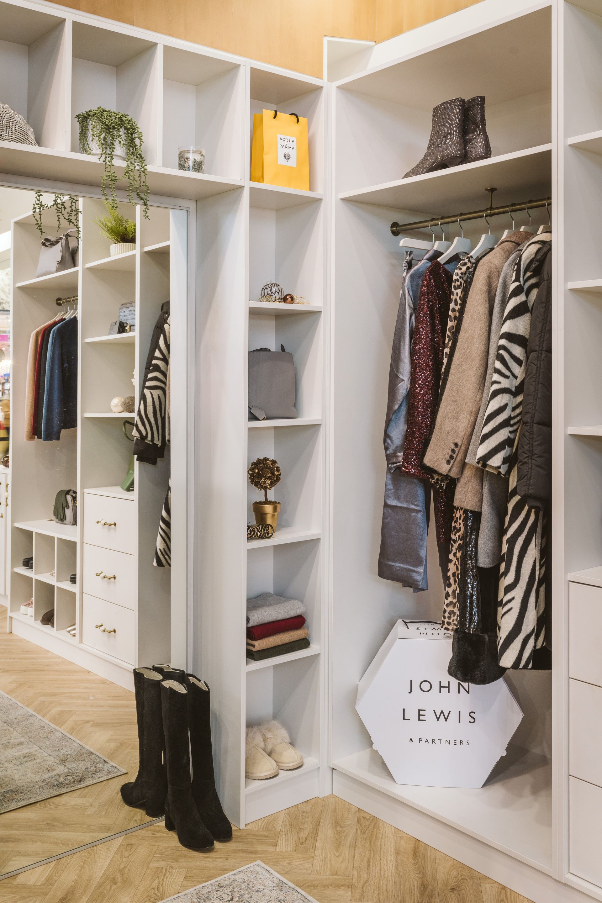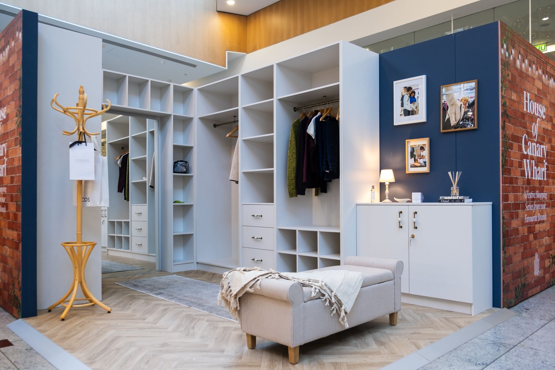 Tasked with creating the 'House of Canary Wharf' the JM team built a freestanding vanity room and walk-in wardrobe in the centre of the busy Canary Wharf shopping mall.