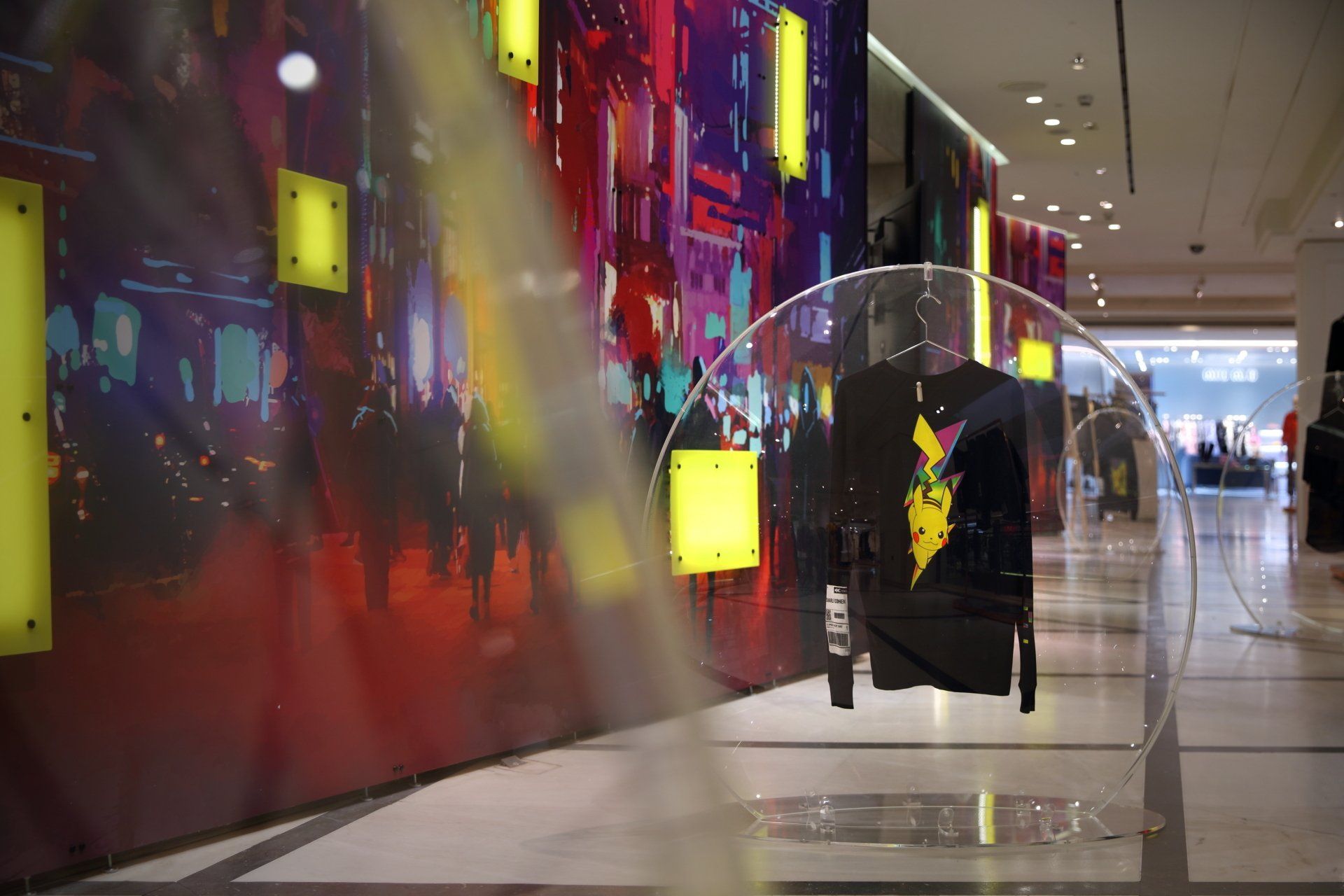 Using printed panels to create a futuristic alleyway feel combined with backlit led panels, the popup display mimics the virtual world ElecricCity created by Charli Cohen for dressing your Avatar online. Maintaining the futuristic feel we also designed and produced the clear perspex display pods for showcasing the clothing range designed by Charli Cohen in collaboration with Pokemon.
