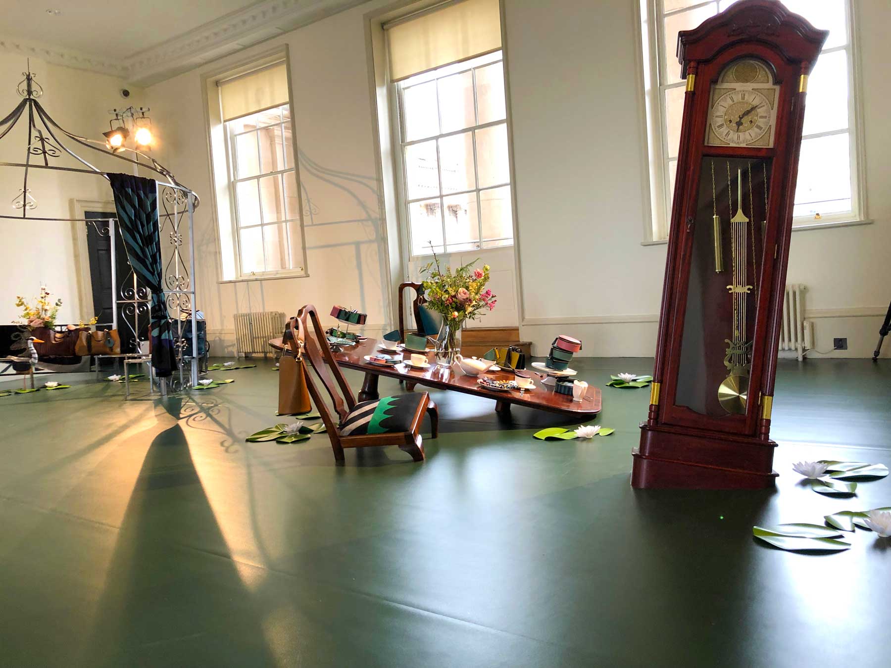 In collaboration with Sarah Izod and Joann Tan Studio, J Mansfield Ltd were tasked with cutting and installing a variety of furniture items to create the illusion that they were floating in this English Country Pond installation.